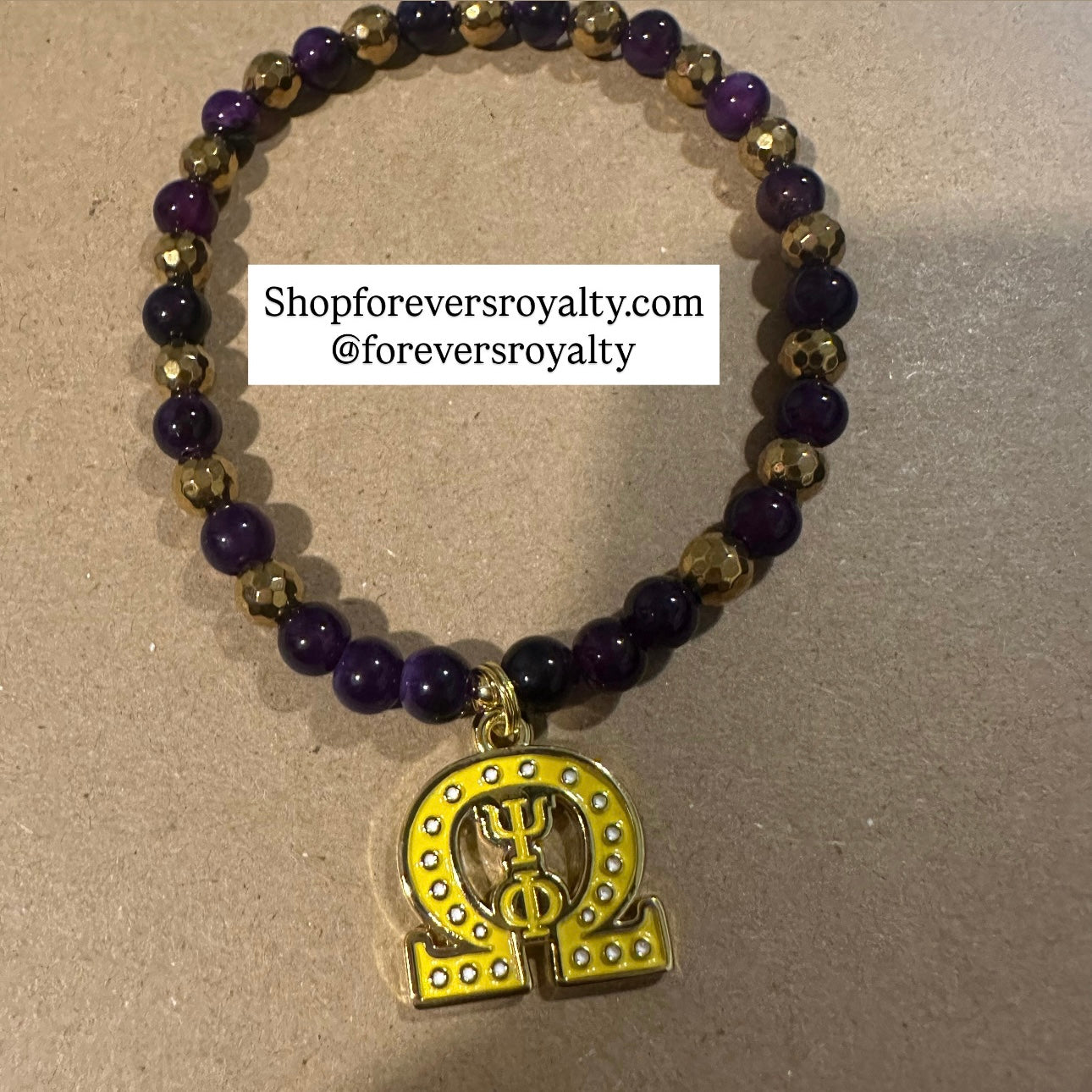Purple and gold beads Gold and yellow Omega charm